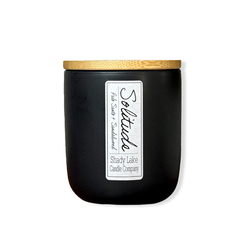 Our Solitude candle begins with fresh top notes of green moss, bergamot, and violet. Middle notes of incense and saffron build depth, while in the base, notes of arid, raw palo santo abound. Hints of sandalwood and patchouli gently ground this gorgeously complex scent.